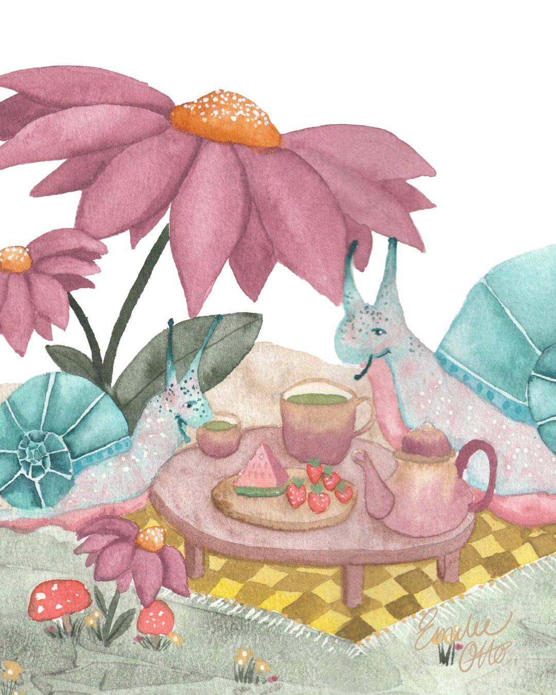 Gumblossom Gully is a cheerful, folksy realm where the tiniest creatures live the grandest lives. Mushroom houses dot the soft mossy ground, woven lanterns swing from trees, and maypoles bloom in every village square. It’s a place of community, joy, and playful mischief, where grasshoppers play dress-ups, beetles listen to music on grammar phones, and snails host tea parties.