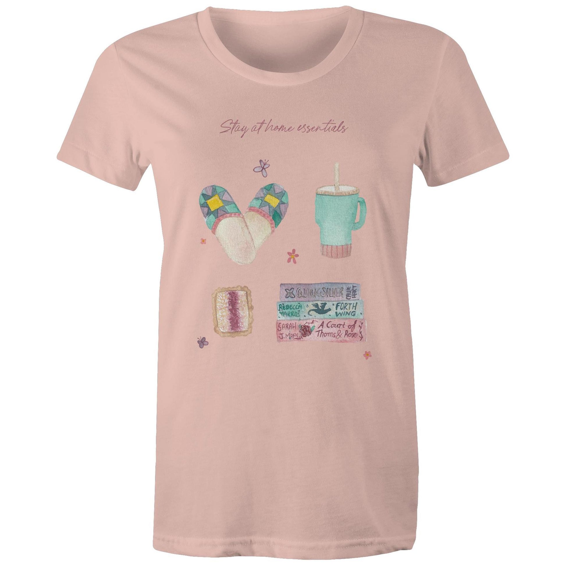 Tee featuring 'Stay at home essentials' illustration by Em.